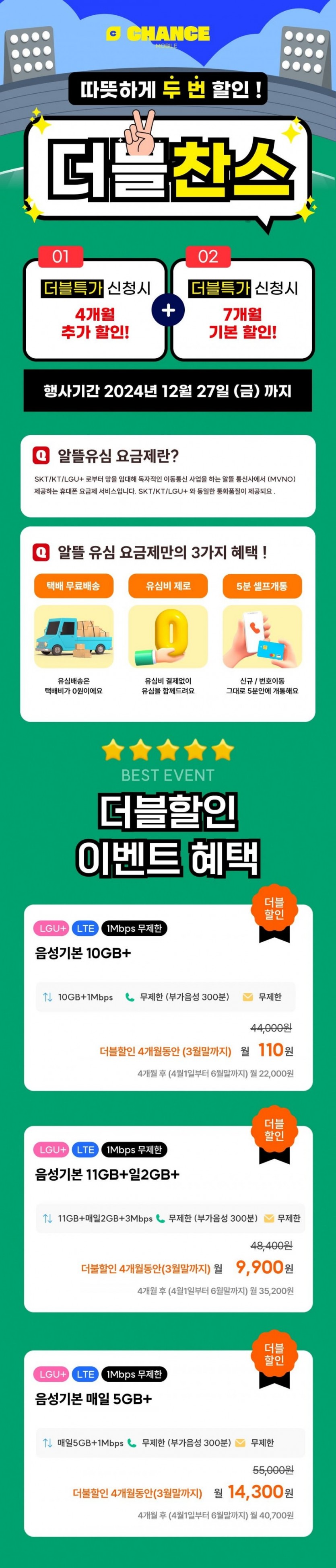 찬스모바일 초특가 작성자 정보 관리자 작성 작성일 2024.12.23 19:53 컨텐츠 정보 2,059 조회 0 추천 0 비추천 목록 본문 찬스모바일쉽고 빠른 개통, 통신비 절감의 찬스!https://chancemobile.co.kr/view/distributor/phone_plan_distributor.aspx?poscd=bcd188635790aefcd14ba77b3f85b1c0 알뜰폰 10GB+1MPS 3월30일까지 100원알뜰폰 11G+2GB+3MBPS 3월30일까지 9900원 . 100기가+5mps . 14000원 . 3월까지쓰고 4월에 번호이동 하심 될거 같네요.그리고 테더링 필요하신분은 엘지 특성상 E심 섞어서 하는 것도 추천 드립니다. E심 개통도 가능하다고합니다.#viral#fyp#tiktok#comedy 0 추천 0 비추천 SNS 공유 관련자료 링크 https://chancemobile.co.kr/view/distributor/phone_plan_distributor.aspx?poscd=bcd188635790aefcd14ba77b3f85b1c0 832 회 연결 이전 리쏘 영원씨 안마의자 작성일 2025.02.08 21:35 다음 “나야, 흑백요리사” 출연진들의 식당 리스트 총정리! 작성일 2024.10.11 16:23 댓글 0 등록된 댓글이 없습니다. 로그인한 회원만 댓글 등록이 가능합니다. 목록