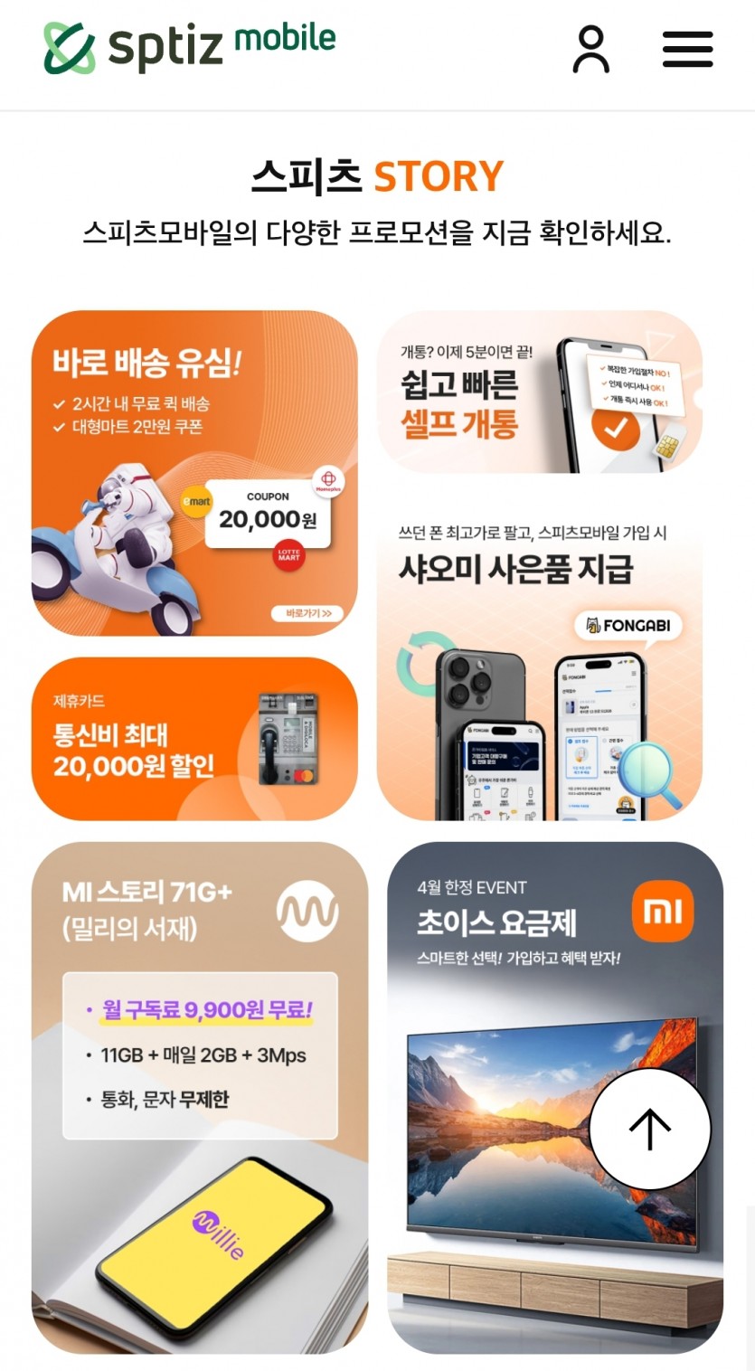 개통을 하면 상품권 증정 이벤트랑 샤오미이어폰 증정 이벤트도 진행하고 있어서 스피츠 모바일 요금제로 선택했어요.